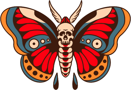 Der Schmetterling ist das Symbol für uns, sich von seinem Raupendasein zu befreien, über sich hinauszuwachsen und eine Metamorphose erleben zu können. Der Totenkopf zeigt die bad habbits welche stets präsent bleiben, da auch die Dämonen nie ganz aus uns verschwinden.
